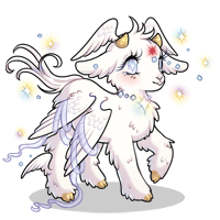 The name Luxine comes from a neogender that is associated with, among other things, divinity, holiness, and light. (Here is a page about it.) Vexxi from our system uses this term, and this goat largely belongs to her. The love-themed items also come from Vexxi's aesthetic.