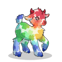 We named Shockwavey after the computer program Shockwave that we used to run browser games during our childhood in the days of the old web. When we split an alter who had a connection to nostalgia and the old web, they named themself Shockwave after the program, but also (due to xs fondness for pet sims) also after this goat! The treasure given to this goat reflects our alter's interests and identity.