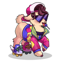Swagadelic was already named that when our friend Bug gave him to us and we didn't have any better ideas to change his name to. Shockwave took ownership of him and declared him an 80scoric xenogender butch he/him lesbian. The lovecore theming of the items is due to Shockwave's fondness for the aesthetic.